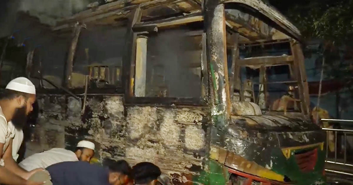 মধ্যরাতে য়মনসিংহে বাসে আগুন, দগ্ধ হয়ে ঘুমন্ত চালকের মৃত্যু